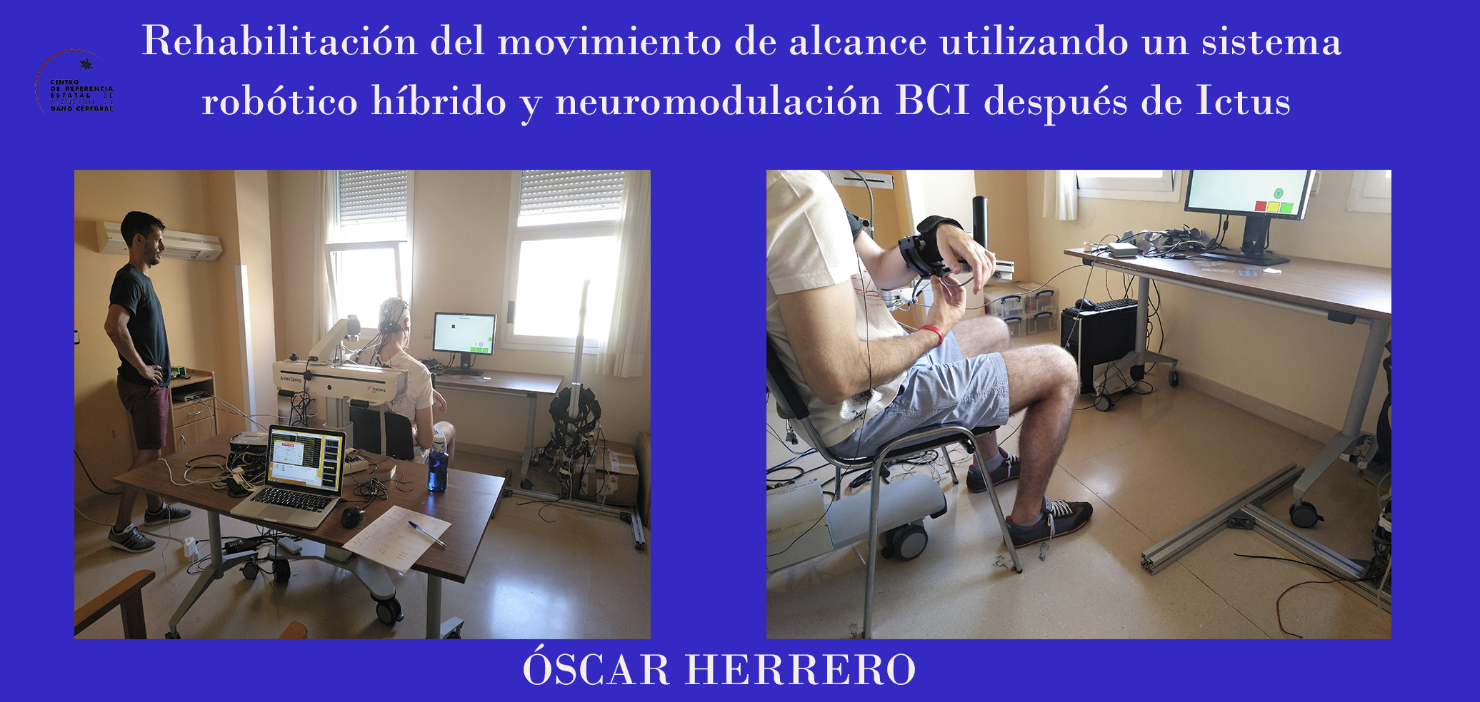 El objetivo del estudio es mejorar el movimiento funcional de alcance mediante el uso de terapias robóticas y de neuromodulación. Lo que se pretende es asistir al movimiento antes mencionado, dando estimulación eléctrica funcional en los músculos afectados en el preciso instante en el que el sujeto desea moverse. Esta intención de movimiento se detecta gracias al registro de las señales electroencefalográficas.
