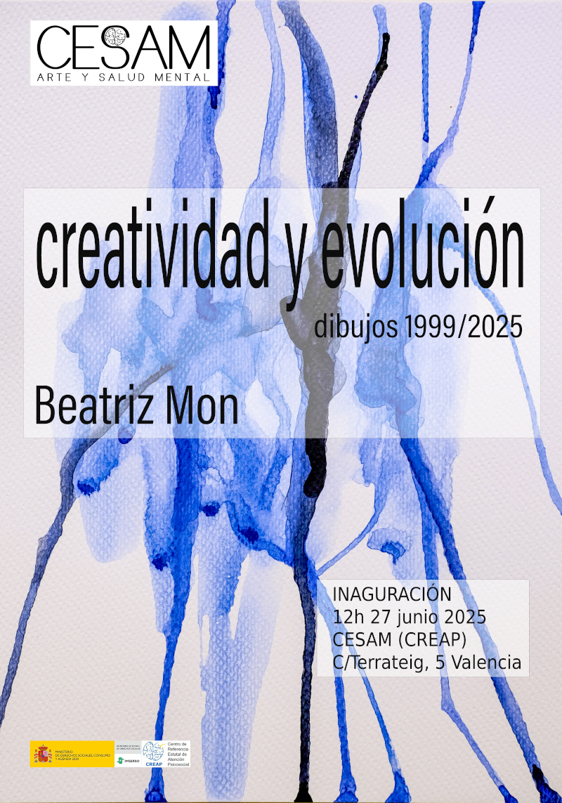 El Centro Expositivo de Arte y Salud Mental (Cesam), ubicado en el Centro de Referencia Estatal de Atención Psicosocial (Creap), dependiente del Imserso, presenta su vigésima exposición «Creatividad y evolución: dibujos 1999/2025» de la artista Beatriz Mon. Muestra que se podrá visitar en el Hall del Creap desde el día de su inauguración el próximo jueves 27 de junio de 2025 hasta septiembre de 2025 (fecha pendiente de concretar).