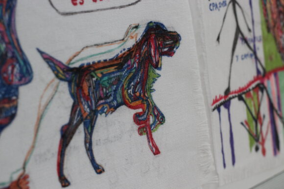 R: Han sido muchos procesos, siendo adolescente y viendo a Antonio Saura por televisión, que entonces lo sacaban mucho, tenía yo 16 o 17 años, me impactaba mucho su pintura. Me volvía un derredor incluso con mi cuerpo, sentía una sensación física, una corriente sanguínea, lo percibía. Es cierto que yo tengo una cultura televisiva, pero he sabido captarla con mis formas y con mi modo. Aprender de ella y aprehenderla, de retomar.