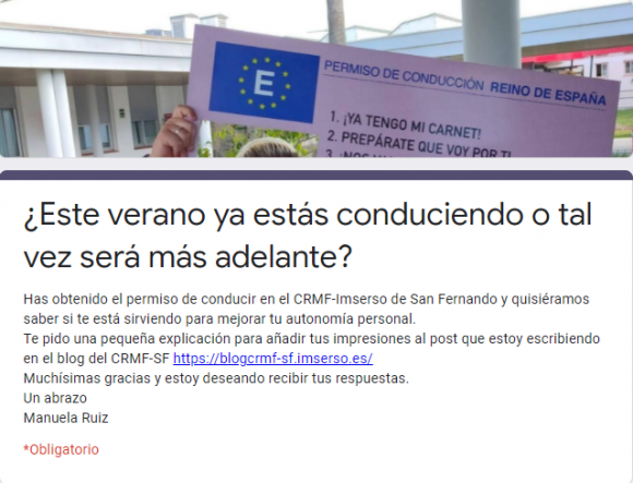Compartimos algunos de los comentarios aportados por el alumnado que ha obtenido el carnet de conducir en el CRMF-Imserso de San Fernando: