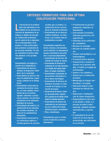 a formación de los profesio- sociales para el análisis y la • Profundización en geriatría,