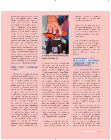 tigador del Área de I+D del IBV, • Analizar la interacción entre dis- de los mayores a través de una