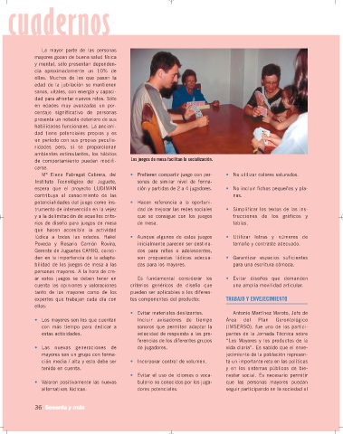 • Valoran positivamente las nuevas bulario no conocidos por los juga- que las personas mayores puedan