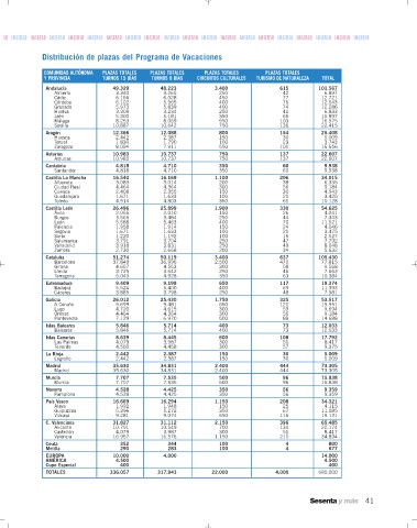 Distribución de plazas del Programa de Vacaciones
