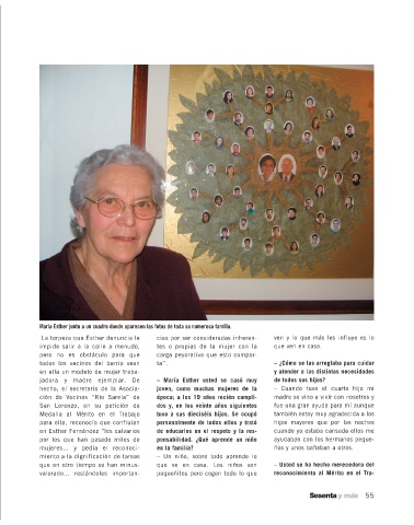 María Esther junto a un cuadro donde aparecen las fotos de toda su numerosa família.
