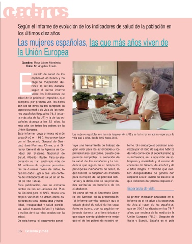 Este informe, cuya primera edición Las mujeres españolas son las más longevas de la UE y se ha incrementado su esperanza de