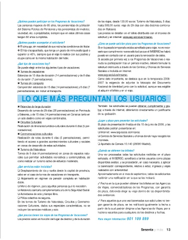 tengan 60 años cumplidos. solicitud y en internet: www.seg-social.es/imserso.