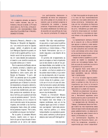 versó sobre EL RETO DEL ENVEJECI- prácticas. Proponiendo para ello, que Unidas que se publicarán a mediados