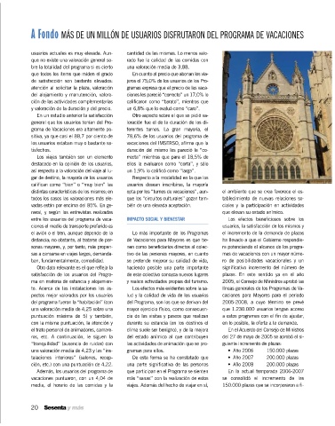 los usuarios estaban muy o bastante sa- vacaciones del IMSERSO, afirma que la