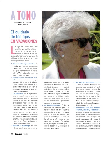 ✓ Revisión al oftalmólogo. Se reco- ciendo trastornos y patologías a una lesión mayor, evitando así poste-