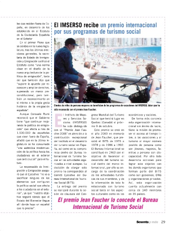 tiene “que continuar mejo- ciales (IMSERSO) Quebec (Canadá) el próxi- esta organización interna-