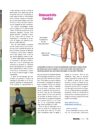 co de la artrosis. Su descubrimiento ha dades reumáticas “porque son práctica- ciona más, con los consiguientes efectos