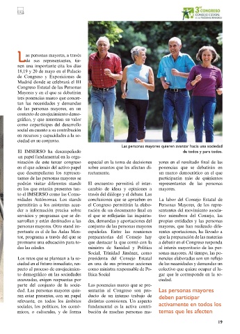 to el IMSERSO como las Comu- través del diálogo y el debate. Las
