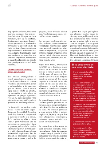 peligro para la salud? ción de la nube de ceniza del Ey- • Evite la actividad al aire libre