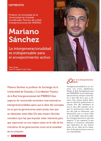 Mariano Sánchez es profesor de Sociología de la Intergeneracionalidad es un tér-