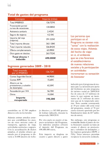 Recaudación por IVA 56,70€ de turismo social en 2009/2010