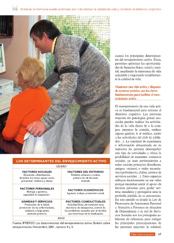 LOS DETERMINANTES DEL ENVEJECIMIENTO ACTIVO sociales, ya sean pertenecientes a