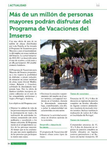 de las personas que participan Imserso ofrece como tipos de costeros peninsulares y en Ba-