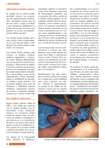 Las células madre tendrán apli- damente, pero queda mucho por (sangre del cordón umbilical), en-