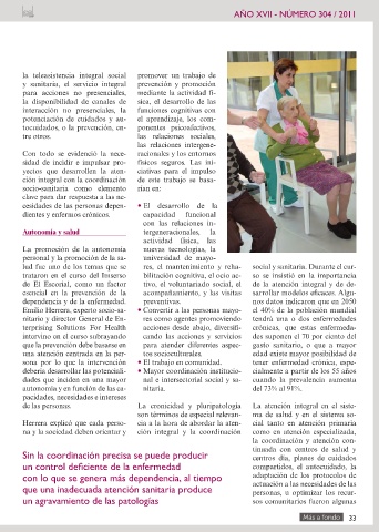 sona por lo que la intervención • El trabajo en comunidad. tener enfermedad crónica, espe-