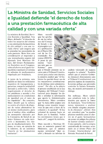 La Ministra de Sanidad, Servicios Sociales