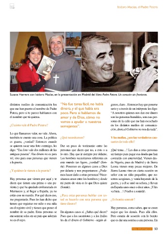 Susana Herrera con Isidoro Macías, en la presentación en Madrid del libro Padre Patera. Un corazón sin fronteras.