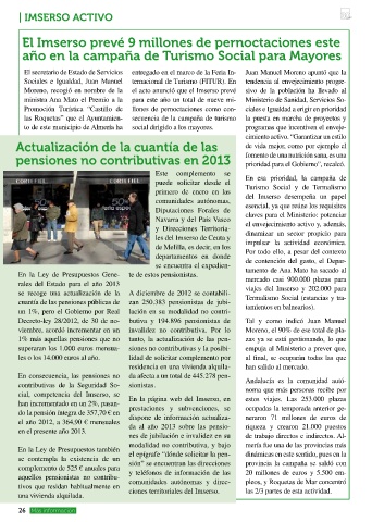 Moreno, recogió en nombre de la el acto anunció que el Imserso prevé sivo de la población ha llevado al