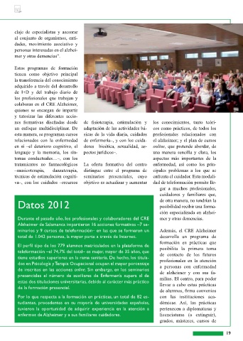 minarios y 9 cursos de teleformación– en las que se formaron un Además, el CRE Alzheimer