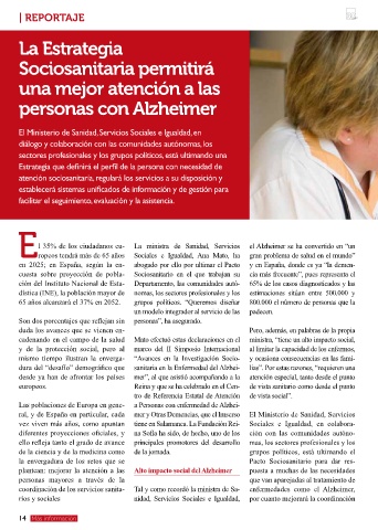 l 35% de los ciudadanos eu- La ministra de Sanidad, Servicios el Alzheimer se ha convertido en “un