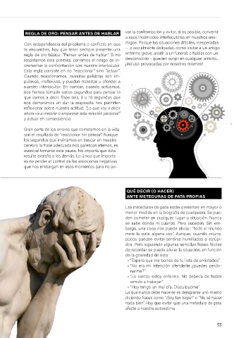 REGLA DE ORO: PENSAR ANTES DE HABLAR var la confrontación y evitar, si es posible, convertir