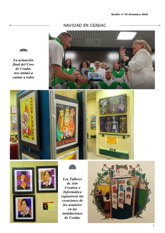 Boletín nº 95 diciembre 2019 NAVIDAD EN CEADAC La actuación final del Coro de Ceadac nos animó a cantar a todos Los Talleres de Arte Creativo e Informática expusieron las creaciones de los usuarios en las instalaciones de Ceadac 7