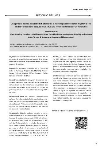 Selección de estudios: Se incluyeron 11 ensayos con- ictus puede conducir a un mejor control del tronco y
