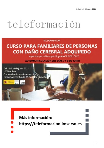 Boletín nº 99 mayo 2021 teleformación Más información: https://teleformacion.imserso.es 11