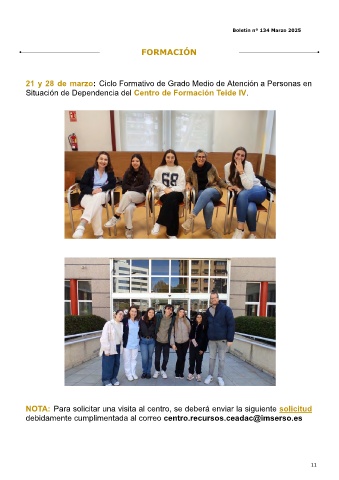NOTA: Para solicitar una visita al centro, se deberá enviar la siguiente solicitud