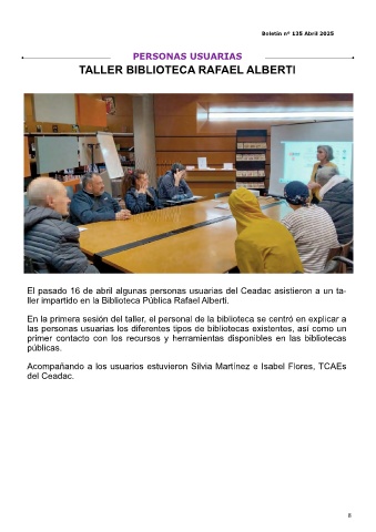 ller impartido en la Biblioteca Pública Rafael Alberti.