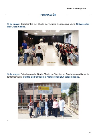 9 de mayo: Estudiantes del Grado de Terapia Ocupacional de la Universidad