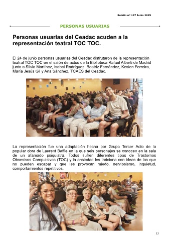 El 24 de junio personas usuarias del Ceadac disfrutaron de la representación