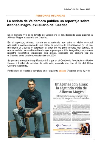 En el reportaje, Alfonso cuenta su experiencia tras sufrir un daño cerebral