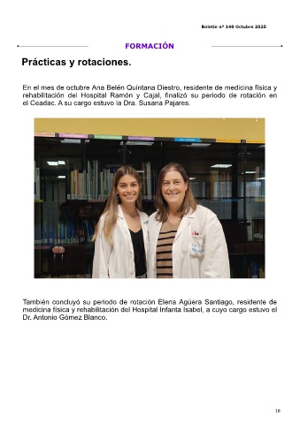 En el mes de octubre Ana Belén Quintana Diestro, residente de medicina física y