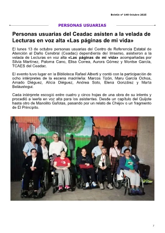 Atención al Daño Cerebral (Ceadac) dependiente del Imserso, asistieron a la