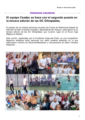 Atención al Daño Cerebral (Ceadac), dependiente del Imserso, participaron en la