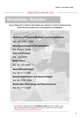 RECUERDA: Disponemos de consulta en sala para las revistas y tam-