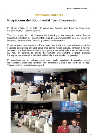 El 11 de marzo en el salón de actos del Ceadac tuvo lugar la proyección