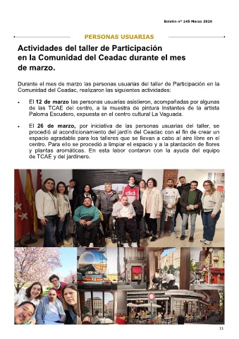 Durante el mes de marzo las personas usuarias del taller de Participación en la
