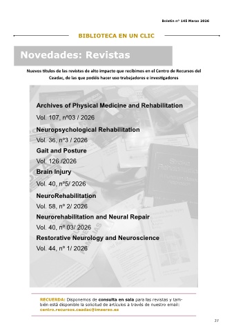 RECUERDA: Disponemos de consulta en sala para las revistas y tam-