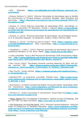• Alvarez, D. (2014) Entornos personales de aprendizaje (PLE): aprendizaje co-