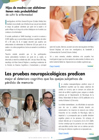 madre o de ambos progenitores tenían un aumento de amiloide en autor del estudio. Además, colaboró con otros investigadores del Mass