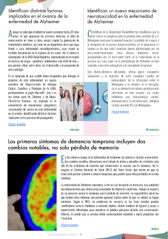 que existen otros síntomas que pueden aparecer incluso antes de que los olvidos se hagan