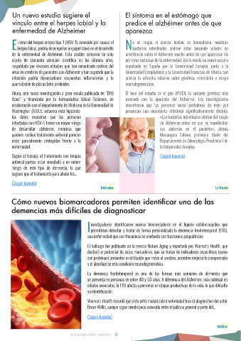 de desarrollar alzhéimer, mientras que sus síntomas en el paciente», afirma
