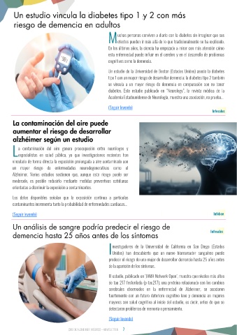 tipo 1 con un mayor riesgo de desarrollar demencia; la diabetes tipo 2 también